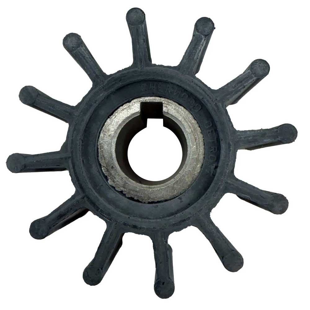 The heart of the Cooling System is the Flexible Impeller located in the sea water pump. A spare should be kept on board at all times for quick service in the event of overheating. Badly bent blades and/or missing blades indicates time for replacement.