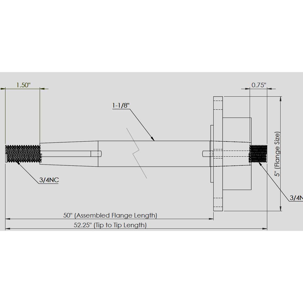 Assembled Length with coupler seated from inside face of flange is 50.00"