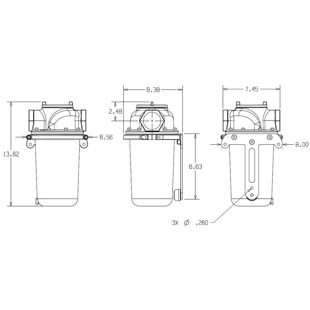 Mounts: (3) .260" Diameter mounting holes